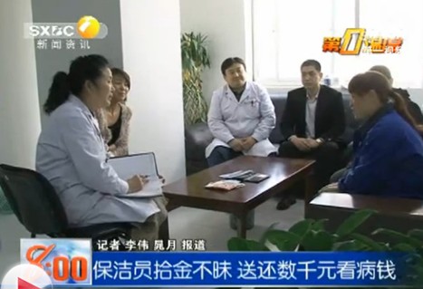 院长桌上放着一份感谢信,其中这样写道:“我来自湖南郴州市,因患鼾症在当地治疗多年没有明显改善,慕名到贵院挂医生号看病。候诊期间去了一趟卫生间。在等待检查时,院领导给我打来了电话并告知我保洁员阿姨捡到了我的钱包。我心里猛地一颤,那里面有我的7张银行卡和身份证,还有9千多元现金,这是为这次看病积攒的3个月的工资。钱包一旦丢失,不但看不成病,连买返程的车票都会非常困难。”感谢信浸满失主的感激之情。