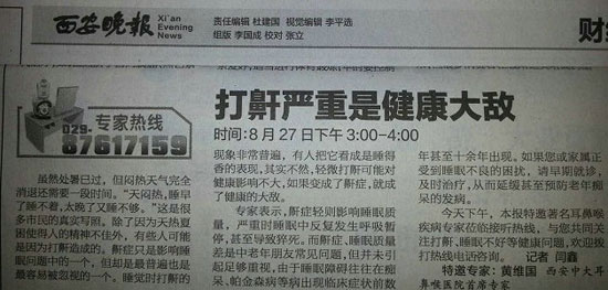 时间已经过了16:00,电话有一拨拨的接到医生热线上来,来长荣主任医师依旧耐心的一一解答,并提出相关的建议。西安晚报相关负责人表示“这次的鼾症科普医生热线的活动非常的成功,非常感谢中大医生能来为广大民众解答。”