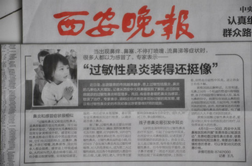 您所在的位置: 首页 > 媒体聚焦 > 【西安晚报】特别报道:西安中大医生谈鼻炎