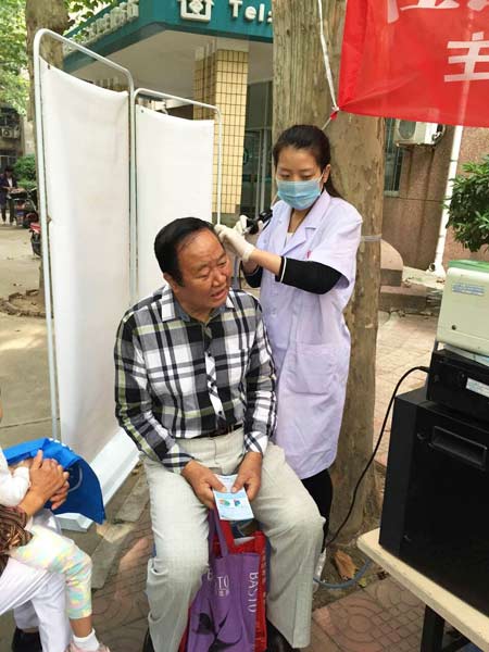 王大爷正在接受耳内窥镜检查