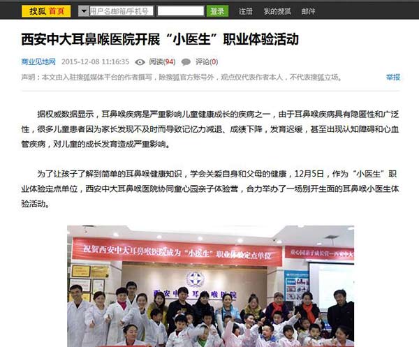 【搜狐网】西安新城中大耳鼻喉医院开展“小医生”职业体验活动