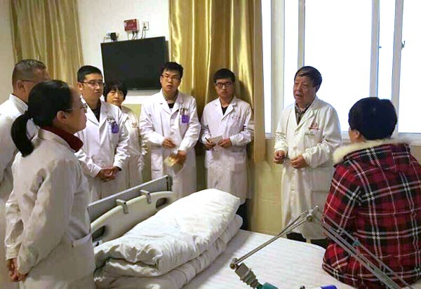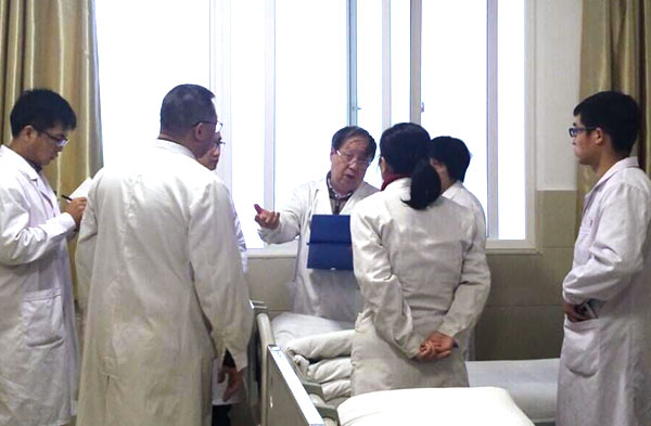 查房之初,来长荣首先向409医院住院部主任详细了解了各患者的症状和治疗现状。查房过程中,来长荣细心询问了每一位住院患者,针对特殊患者进行专科检查,提出指导性建议,并不时叮嘱患者保持良好的日常习惯,配合治疗,早日。