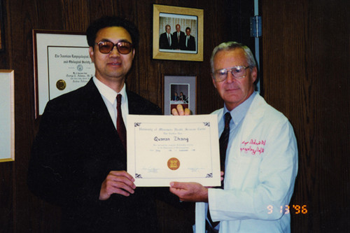 1993年,正值风华正茂的张全安决定勇闯医学禁区,着手对耳鼻喉头颈外科疾病的治疗进行系统性研究与探索。当时历任耳鼻喉科副主任的张全安教授,以高级访问学者身份多次赴美从事科研和学术交流长达5年多;其中参与美国明尼苏达耳鼻喉头颈外科研究中心进行病理研究,所提出的一系列理论居世界前沿水平,国内领先地位。