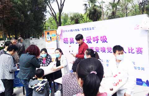 本次活动由耳鼻喉医生义诊、嗅觉达人大赛、会诊等丰富多彩的部分组成,同时免费为市民进行耳鼻喉常规检查、血压测试、指导用药、发放健康宣传资料,以增强人们对耳鼻喉疾病危害的认识和防治知识。《工人报》、《三秦都市报》等多家媒体对此进行了全程报道。