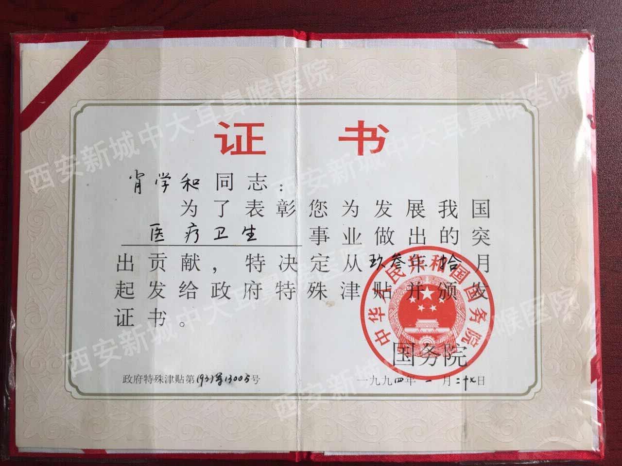 肖学和教授被授予国务院特殊津贴专家